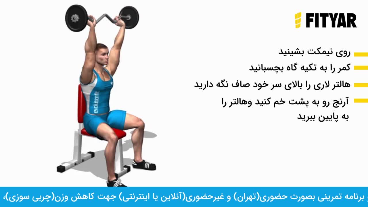 حرکت پشت بازو هالتر خم نشسته بالای سر