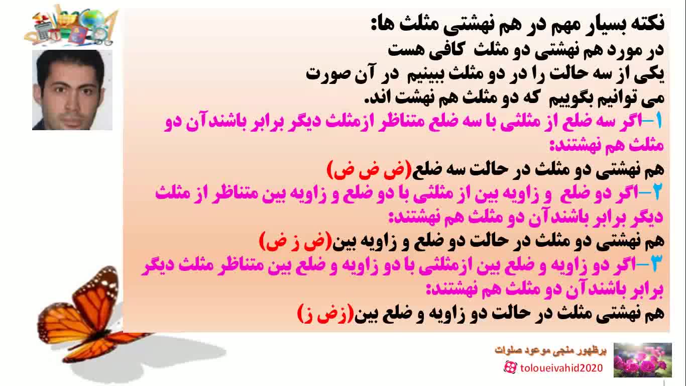 تدریس درس سه فصل شش ریاضی هشتم مثلث های هم نهشتی مدرس میر وحید طلوعی