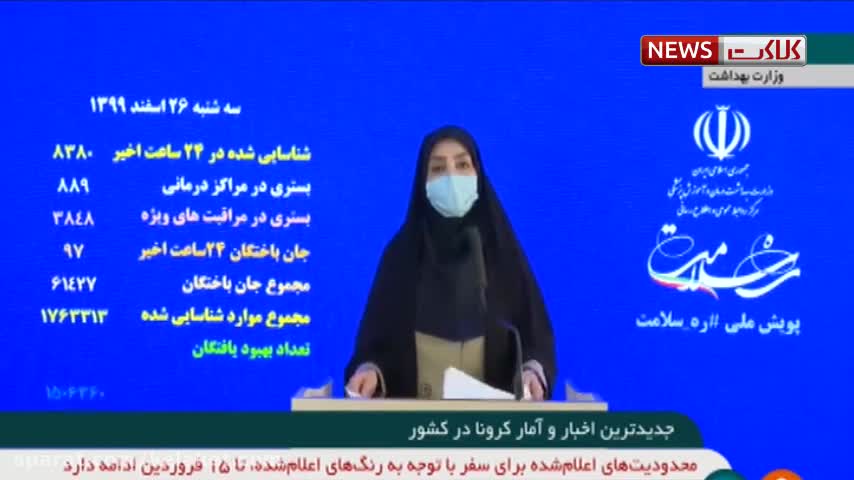 آخرین آمار کرونا در ایران ۲۶ اسفند ۹۹: فوت ۹۷ نفر در شبانه روز گذشته
