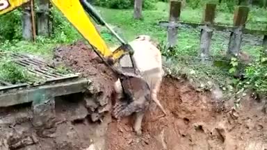 تشکر جالب فیل از بیل مکانیکی که جانش را نجات داد