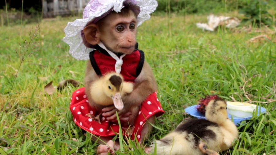 جوجه اردکها و میمون کوچولو با لباس جدید در پیک نیک