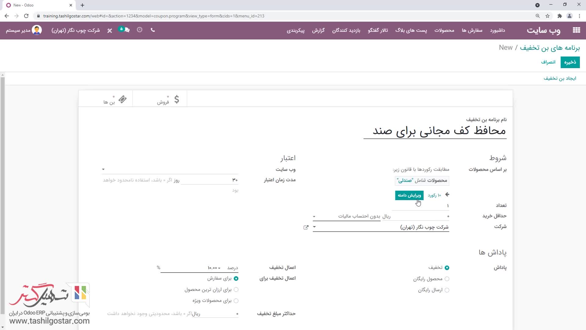 برنامه های بن تخفیف برگرفته از Odoo ERP