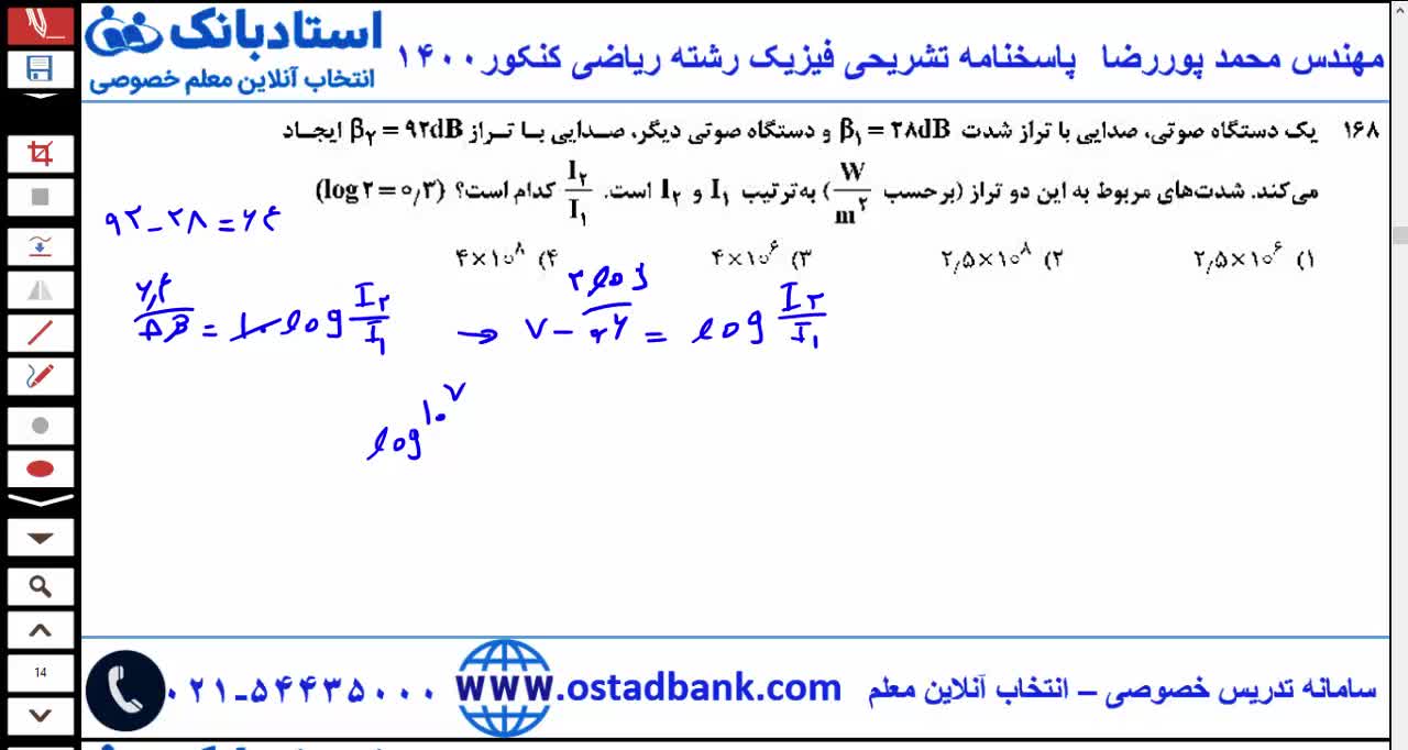 پاسخنامه تشریحی فیزیک رشته ریاضی کنکور 1400 - محمد پوررضا 09355465946