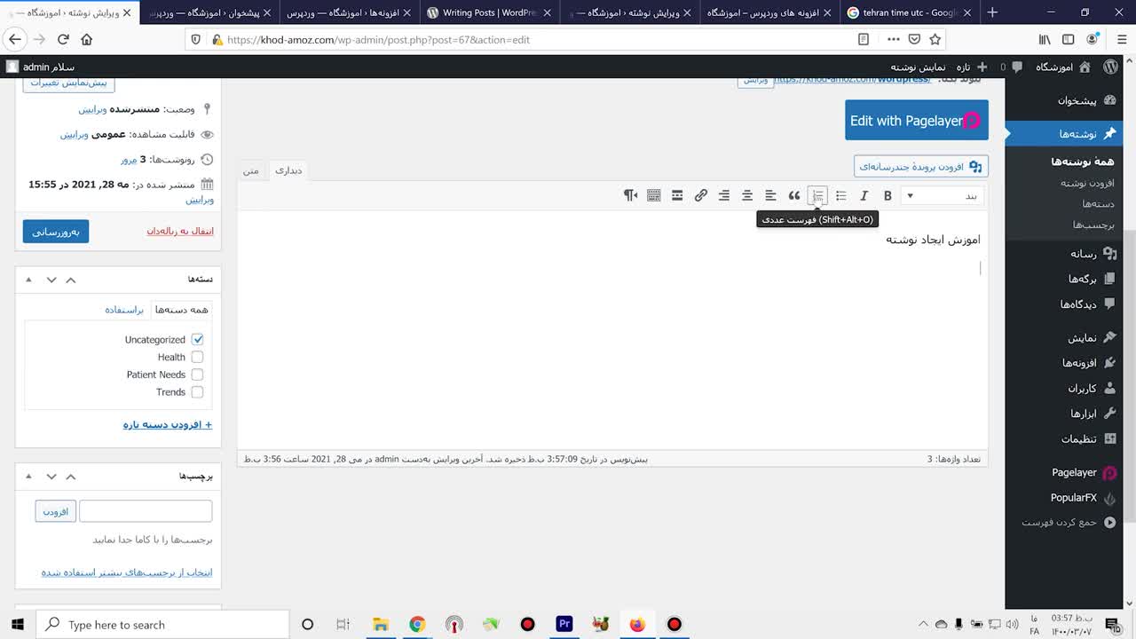 سایت وردپرسی _ ایجاد صفحه و نوشته جدید ، تنظیمات اولیه وردپرس ، افزونه های کاربردی