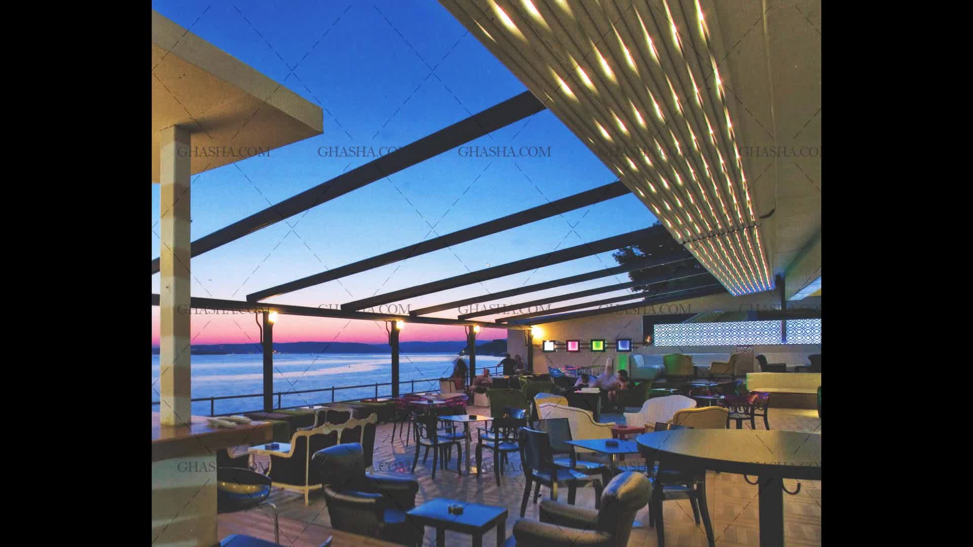 زیباترین سقف برقی رستوران-سایبان متحرک فودکورت رستوران-حقانی 09380039391-فروش سقف جمع شونده تالار