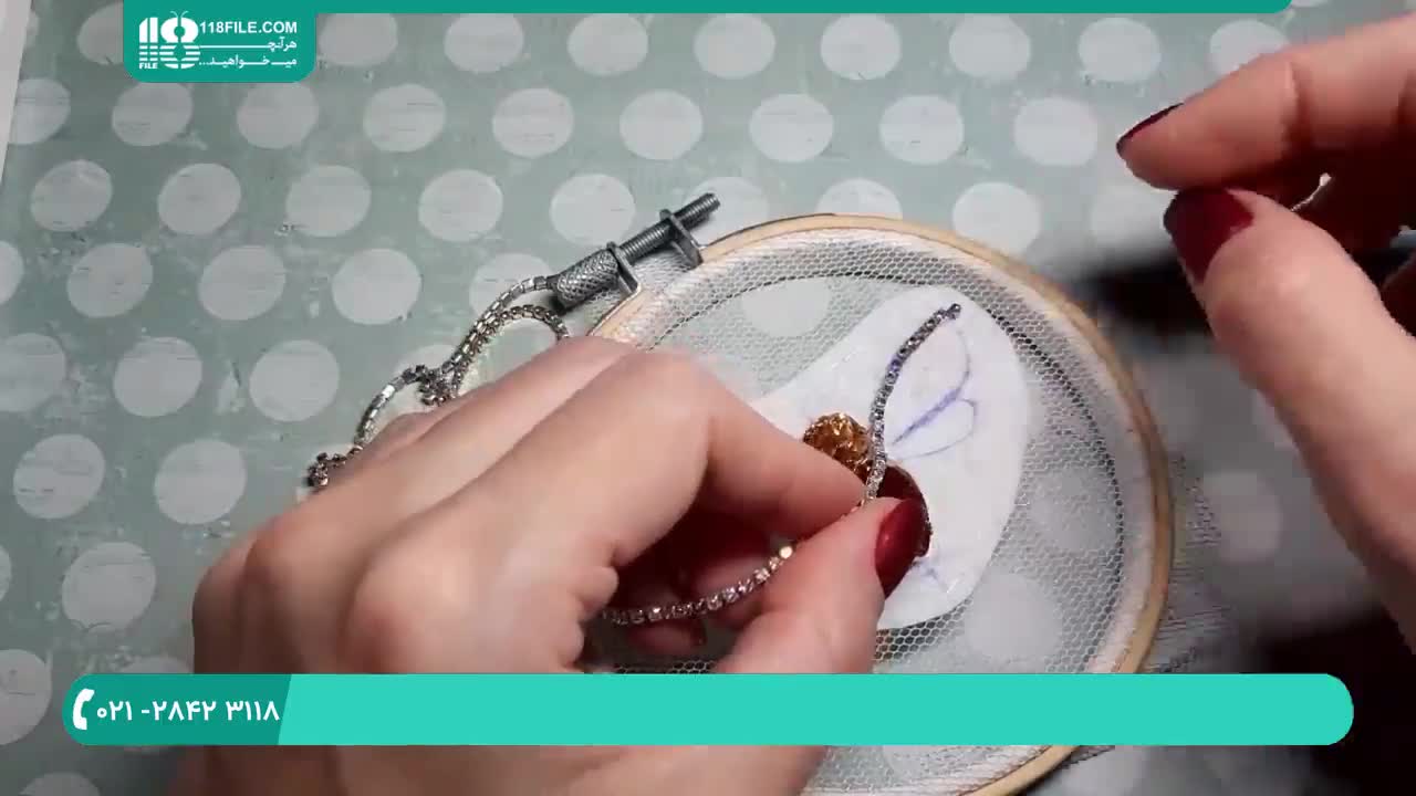 آموزش جواهر دوزی | مروارید دوزی | سرمه دوزی (سنجاق سینه زنبور روی تور)