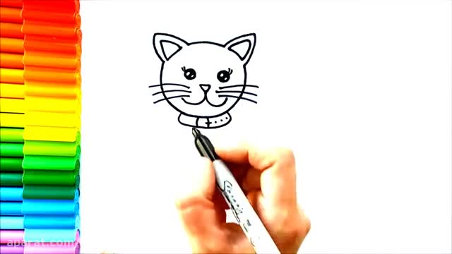 آموزش نقاشی کودکانه | نقاشی گربه با رنگ آمیزی زیبا