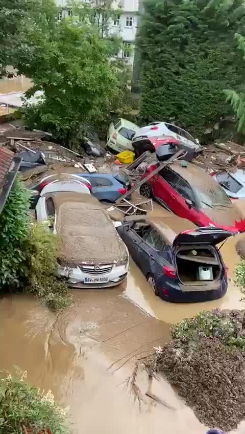 تصاویری از گیر افتادن ده ها ماشین در سیل آلمان