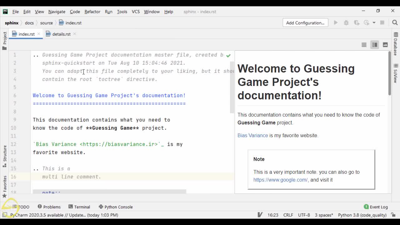 افزایش کیفیت کد پایتون - directives - کتابخانه sphinx