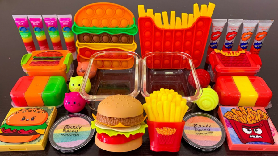 مخلوط کردن اسلایم میکاپ _ پاپ اسلایم فست فود