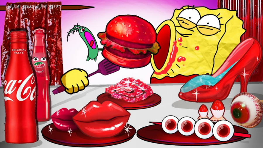 چالش خوراکی های قرمز باب اسفنجی و پاتریک