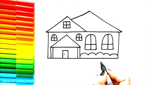 آموزش نقاشی فوق العاده زیبا خانه لاکچری برای کودکان