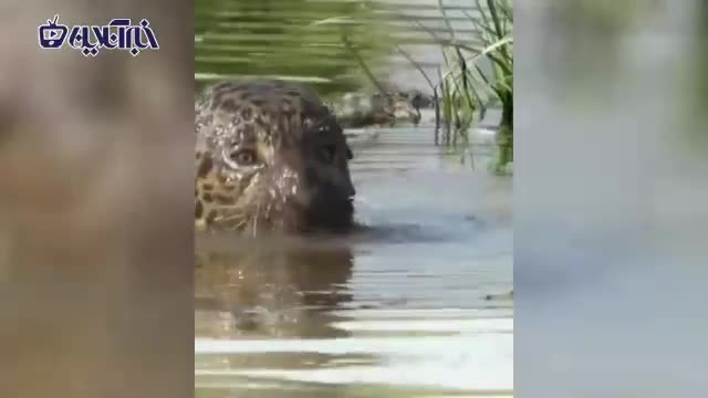 تاکتیک حیرت انگیز یک پلنگ برای شکار یک تمساح