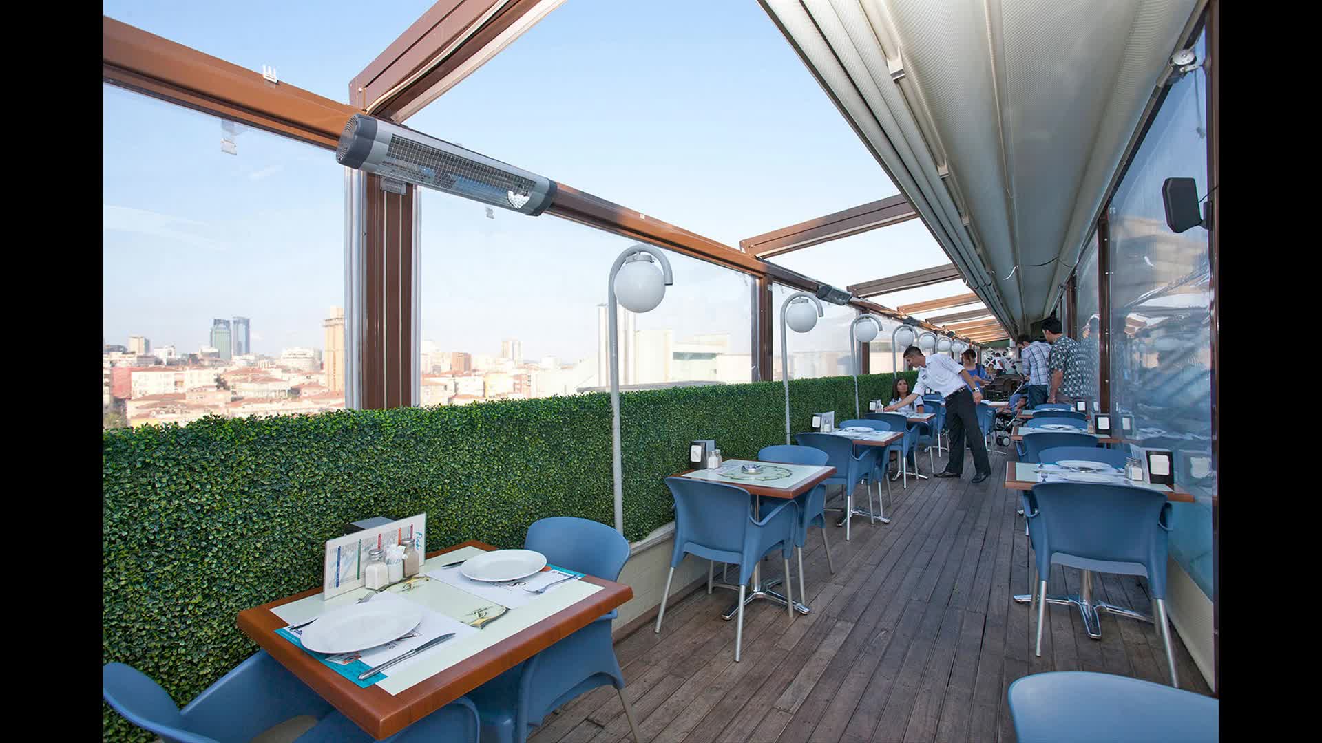 سقف متحرک روفگاردن کافی شاپ-سایبان جمع شونده حیاط رستوران