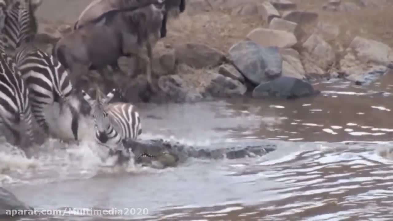 شکار حیوانات حیات وحش _ حمله ناگهانی کروکودیل به حیوانات