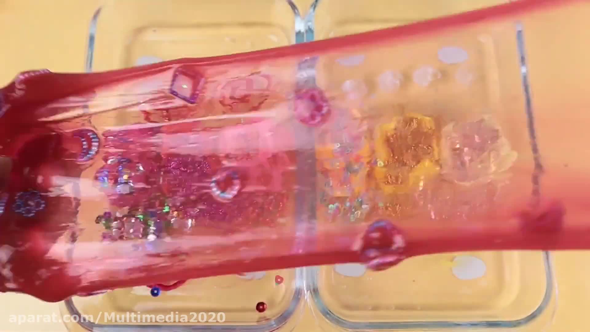 مخلوط کردن پاپ اسلایم های زرد و قرمز