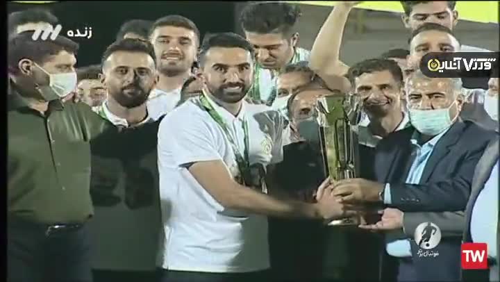 لحظه اهدای جام به فجر سپاسی و جشن قهرمانی تیم