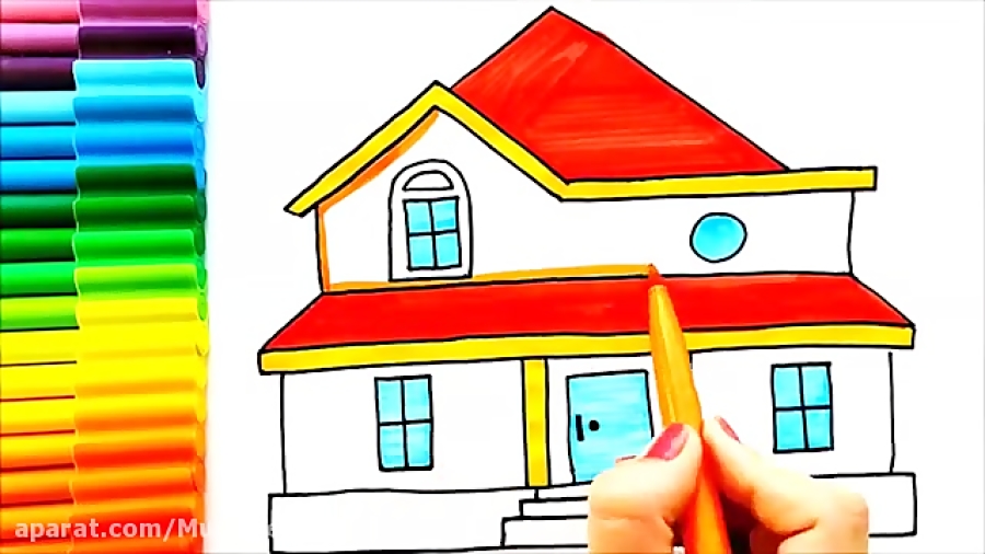 آموزش نقاشی کودکانه - نقاشی خانه ویلایی - نقاشی کودکانه سرگرمی