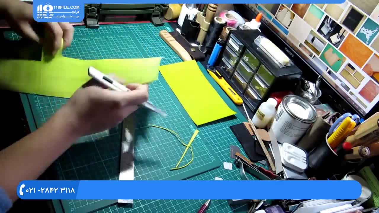 آموزش چرم دوزی :: دوخت کیف چرم :: دوخت جاکارتی با چرم رنگی