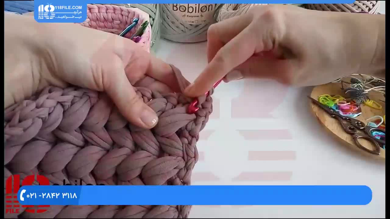 آموزش تریکو بافی :: بافت تریکو :: بافت سبد تریکو :: بافت کیف تریکو با کفی ساده