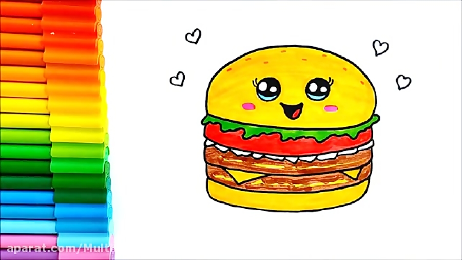 آموزش نقاشی کودکانه | نقاشی همبرگر خوشمزه | نقاشی فست فود سرگرمی