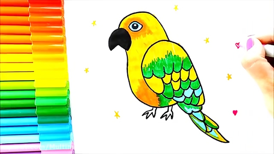آموزش نقاشی کودکانه | نقاشی طوطی با رنگ آمیزی کودکانه
