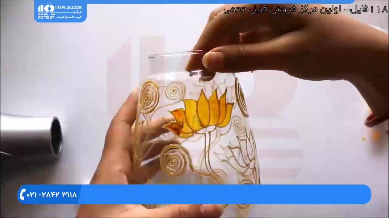 آموزش ویترای :: نقاشی روی شیشه :: دورگیری ویترای :: طراحی گل روی چراغ گرد سوز
