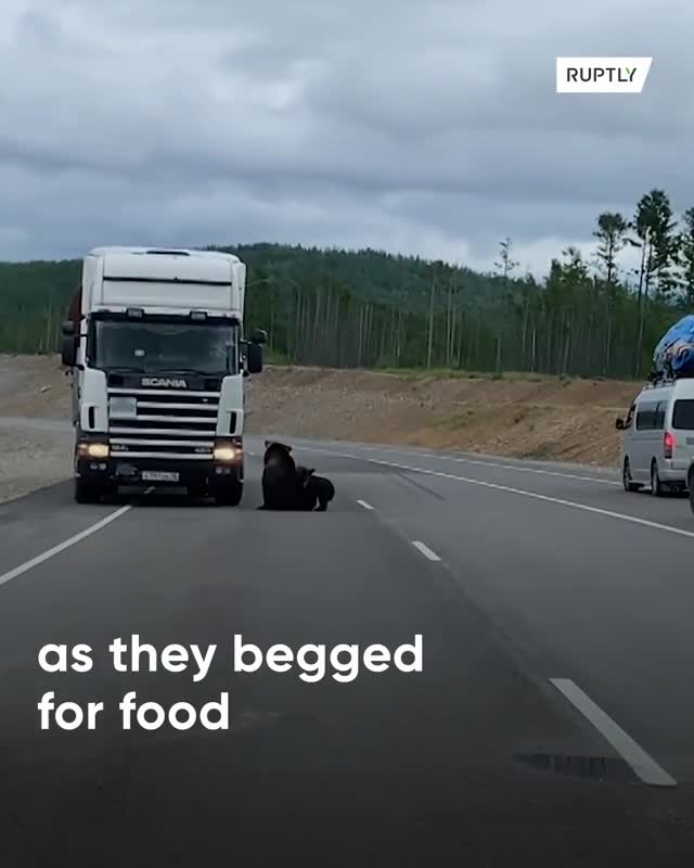 باج گیری خرس ها از رانندگان در جاده !