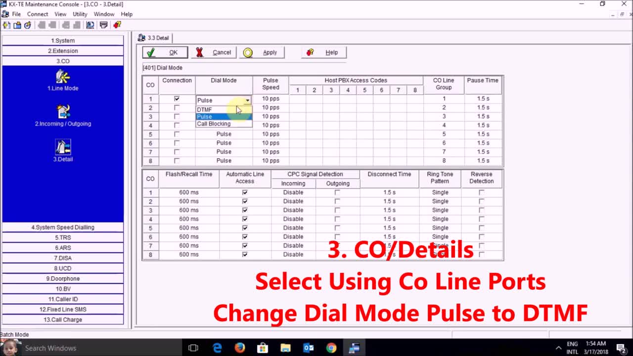نحوه تنظیم تماس های ورودی و خروجی Co Line در سانترال KX-TES 824 پاناسونیک
