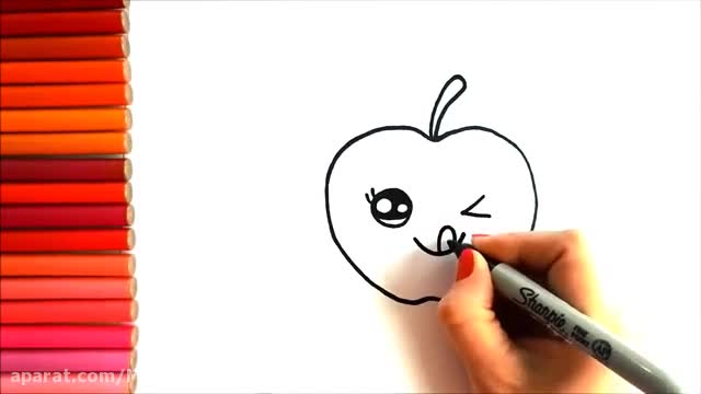آموزش نقاشی کودکانه | نقاشی سیب خوشمزه و خندان