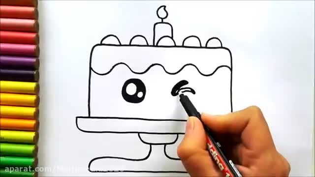 آموزش نقاشی کودکانه | نقاشی کیک تولد با رنگ آمیزی