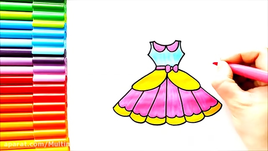 آموزش نقاشی کودکانه | نقاشی لباس مجلسی دخترانه