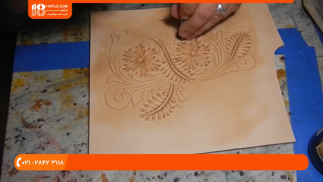 حکاکی روی چرم|حکاکی با هویه( حکاکی و سایه زنی طرح گل) و گلبرگ پارت