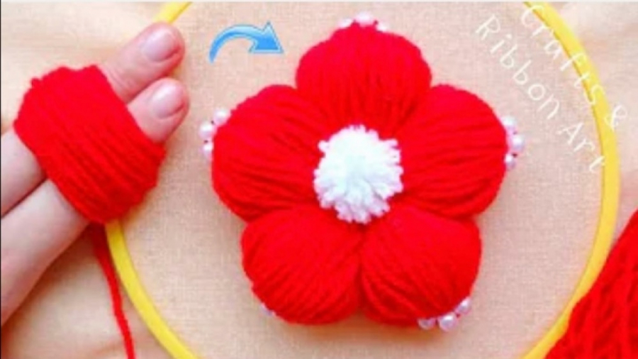 آموزش بافتنی های خلاقانه و هنری _ گل قرمز خوشگل