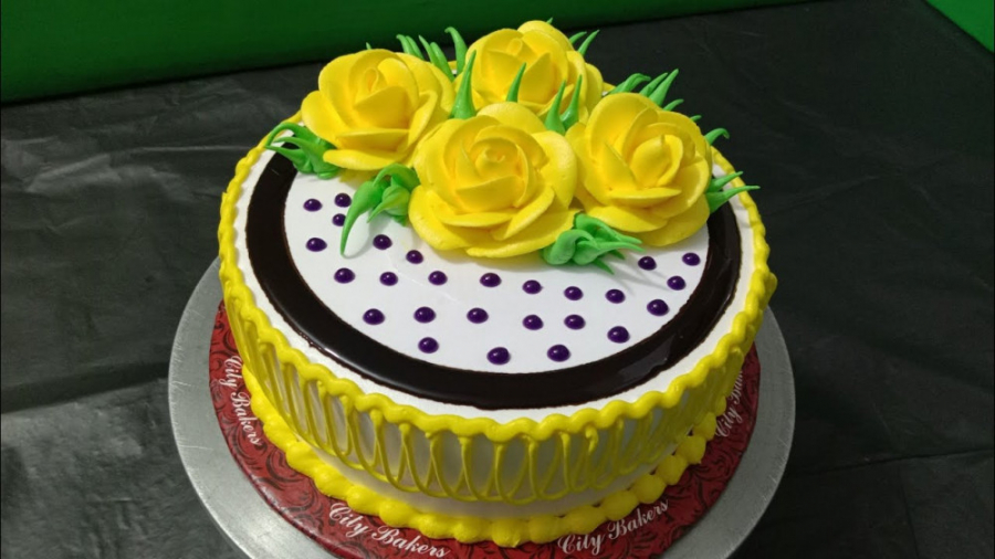 آموزش کیک آرایی زیبا با طرح گل های خوشگل زرد