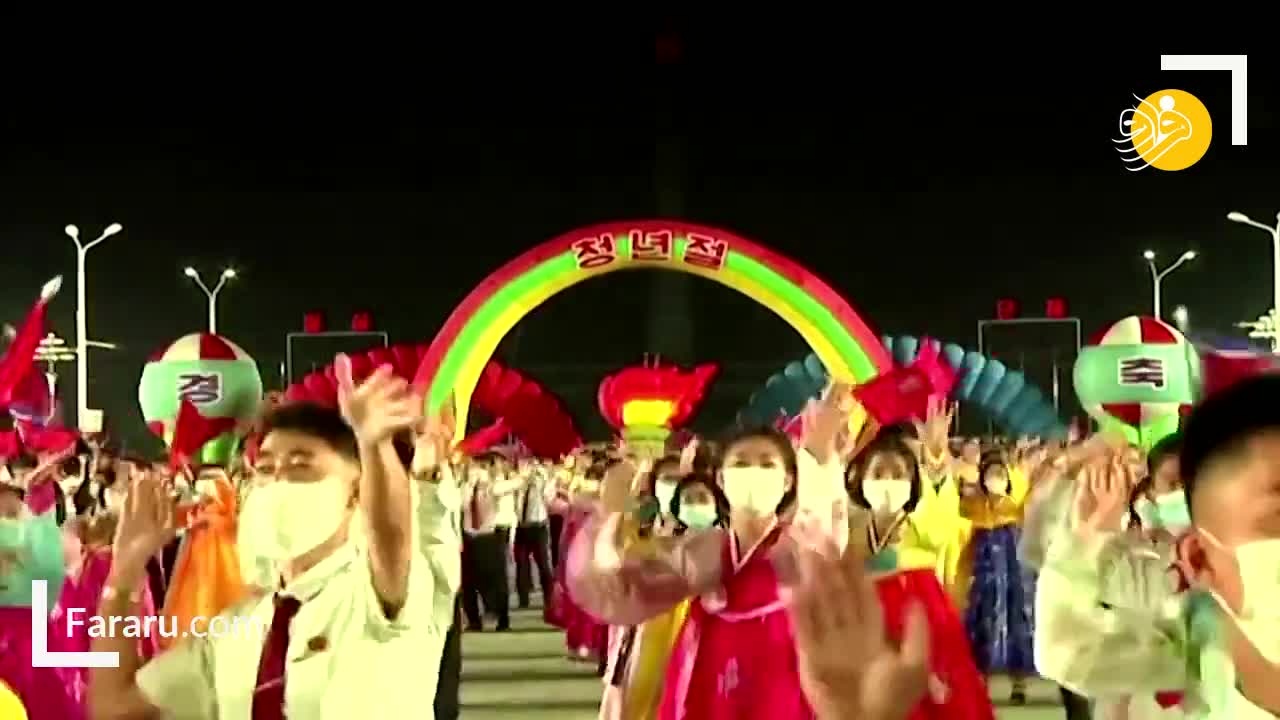 رقص دختران و پسران کره شمالی در جشن روز جوان