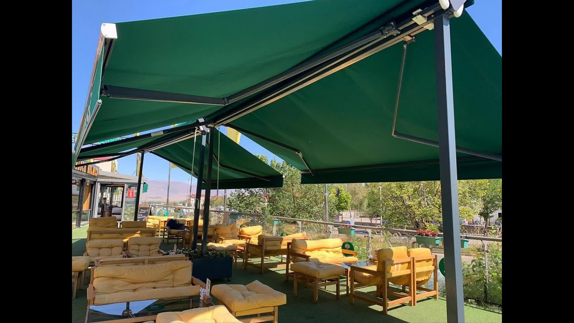 سایبان تاشو رستوران-سایبان برقی دوبازویی- سایبان متحرک کافه رستوران- حقانی 09380039391