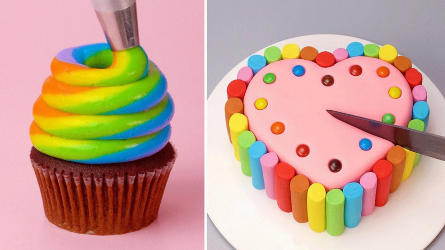 آموزش تزیین کیک قلبی : تزیین کیک رنگین کمانی جدید