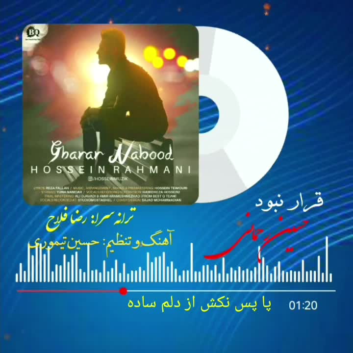 آهنگ "قرار نبود" / خواننده: حسین رحمانی / ترانهسرا: رضا فلاح (بجنوردی) / آهنگ و تنظیم و میکس: حسین تیموری