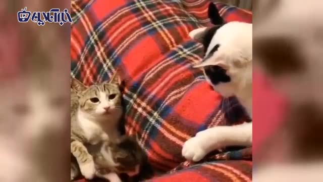 محافظت یک گربه مادر از بچهاش در مقابل تنبیه پدر