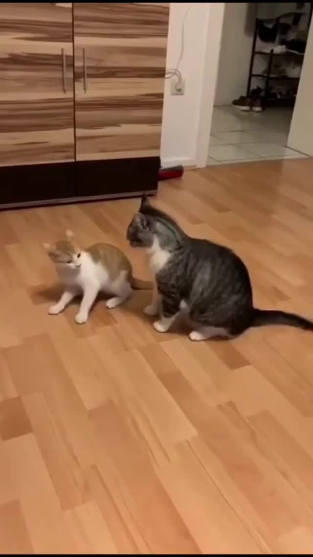 اجرای فن سنجاب پرنده در کشتی گرفتن جالب دو گربه