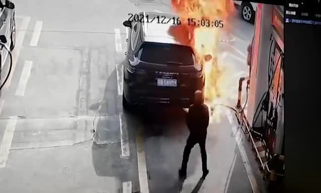 مرد جوان ، زن پورشه سوار را به آتش کشید