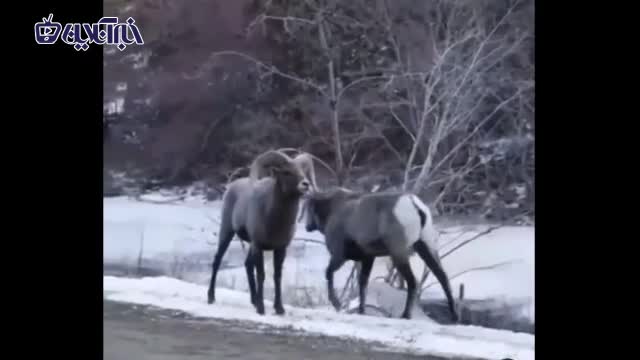 آرایش جنگی جالب دو قوچ در حین مبارزه تن به تن
