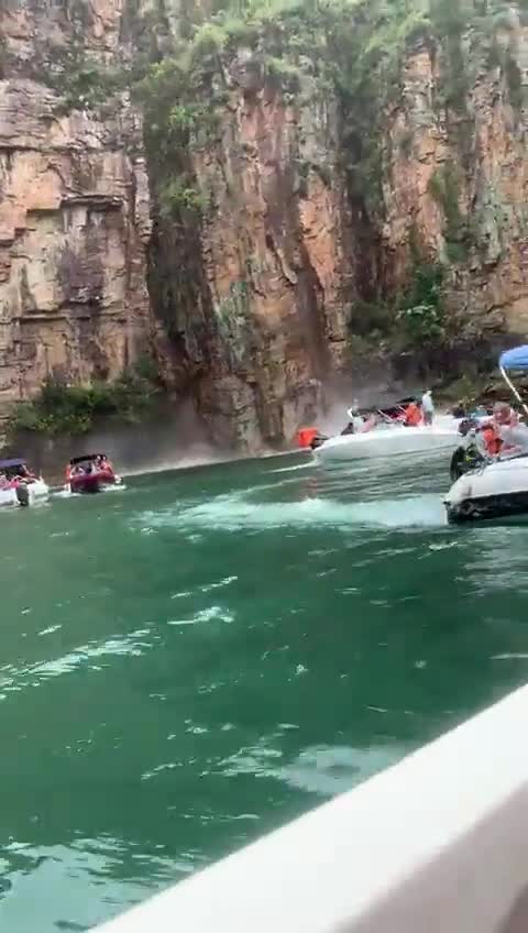 سقوط ترسناک صخره روی قایق گردشگران در برزیل