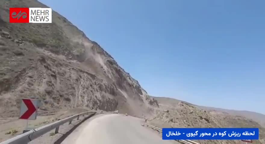 لحظه ریزش کوه در محور کوثر- خلخال