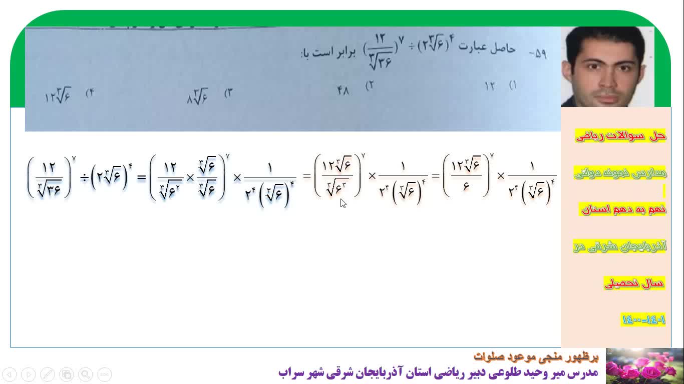 حل تشریحی سوالات ریاضی آزمون ورودی نمونه دولتی استان آذربایجان شرقی۱۴۰۱_۱۴۰۰