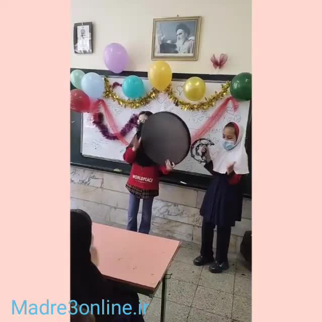 دف نوازی زیبای دختر دانش آموز در کلاس