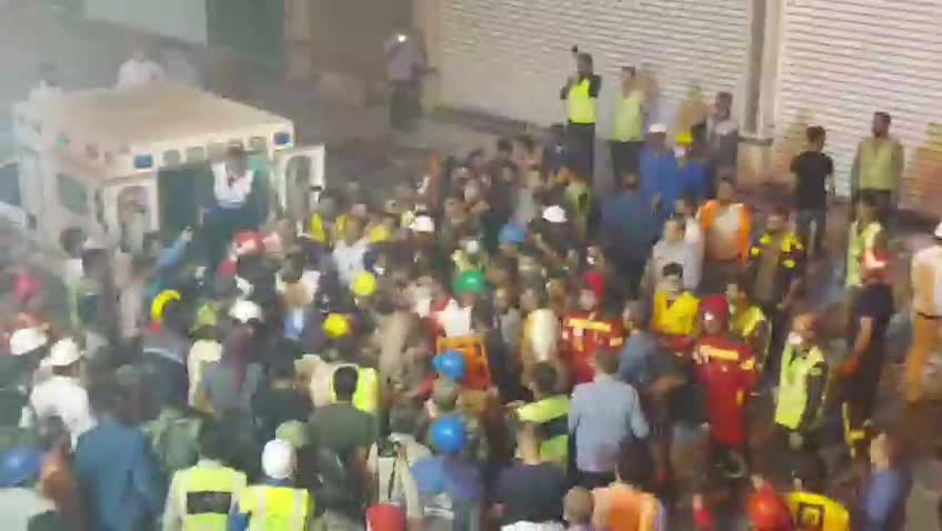 تصاویری از نجات یک شهروند آبادانی که زنده از آوار متروپل آبادان خارج شد