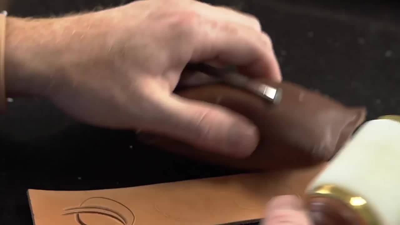 حکاکی روی چرم-حکاکی با هویه-حکاکی طرح پنج گلبرگ