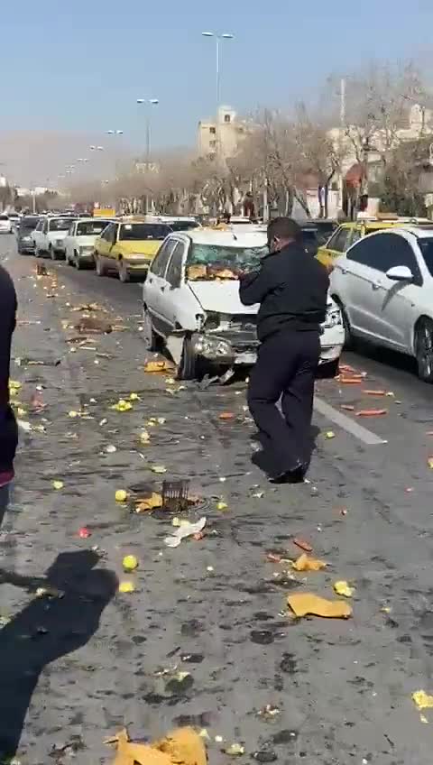 خسارت سنگین پراید درپی تصادف با گاری میوه !